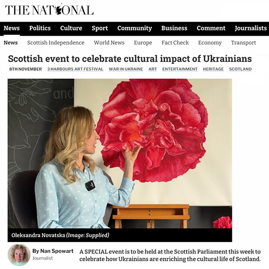 "Among the artists and creators who have built new lives in Scotland is Oleksandra Novatska (pictured), an artist, curator, and educator whose contemporary botanical art bridges nature and culture. Since arriving in Scotland, Oleksandra has held solo exhibitions, joined national group shows and developed her own art courses."